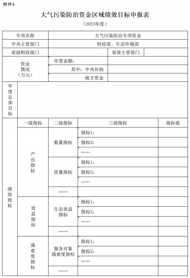 5.大氣污染防治資金區(qū)域績效目標(biāo)申請表