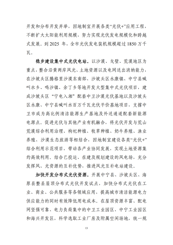 光伏重點(diǎn)任務(wù):大力推進(jìn)太陽(yáng)能開(kāi)發(fā)利用,到2025年,全市光伏發(fā)電裝機(jī)規(guī)模超過(guò)1850萬(wàn)千瓦。