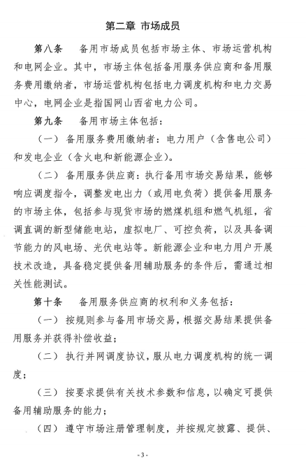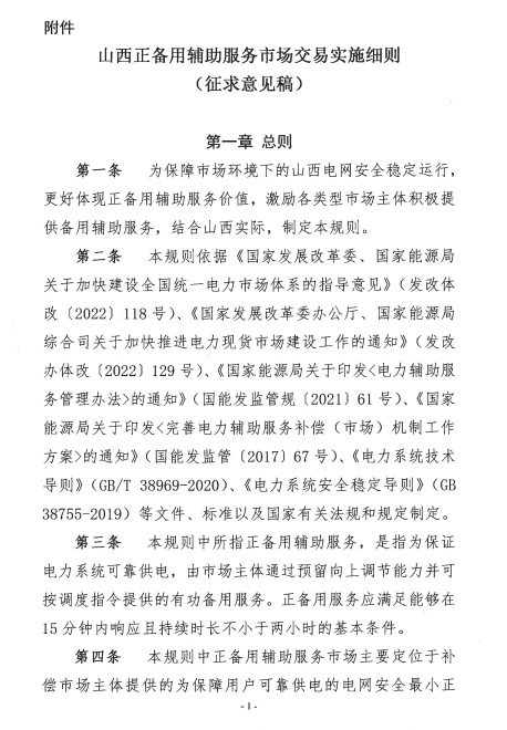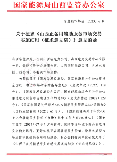 山西能監(jiān)辦發(fā)布山西正備用輔助服務(wù)市場(chǎng)交易實(shí)施細(xì)則(征求意見稿)