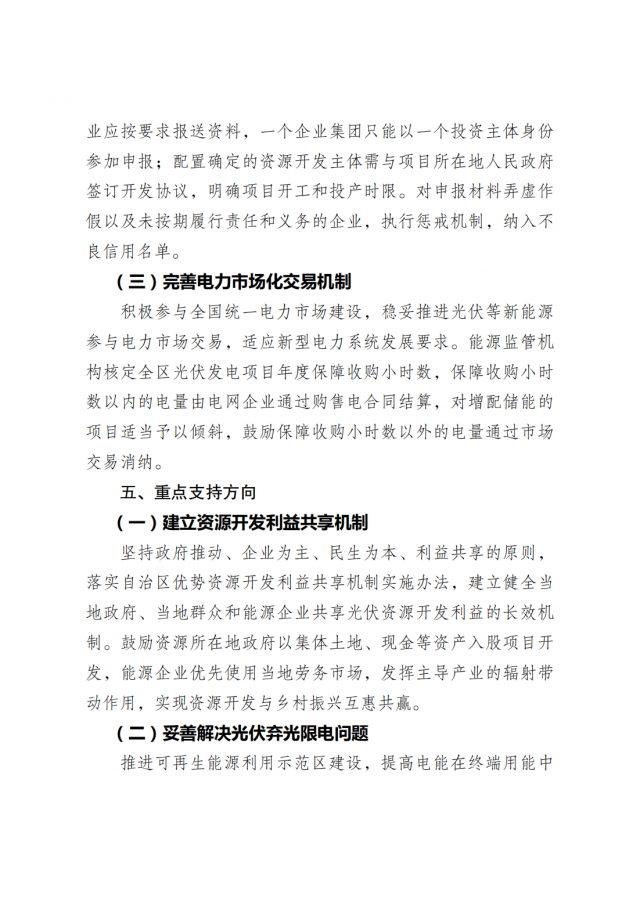 積極參與全國統(tǒng)一電力市場建設(shè),穩(wěn)妥推進(jìn)光伏等新能源參與電力市場交易,適應(yīng)新型電力系統(tǒng)發(fā)展要求。能源監(jiān)管機(jī)構(gòu)核定全區(qū)光伏發(fā)電項(xiàng)目年度保障收購小時(shí)數(shù),保障收購小時(shí)數(shù)以內(nèi)的電量由電網(wǎng)企業(yè)通過購售電合同結(jié)算,對增配儲能的項(xiàng)目適當(dāng)予以傾斜,鼓勵(lì)保障收購小時(shí)數(shù)以外的電量通過市場交易消納。