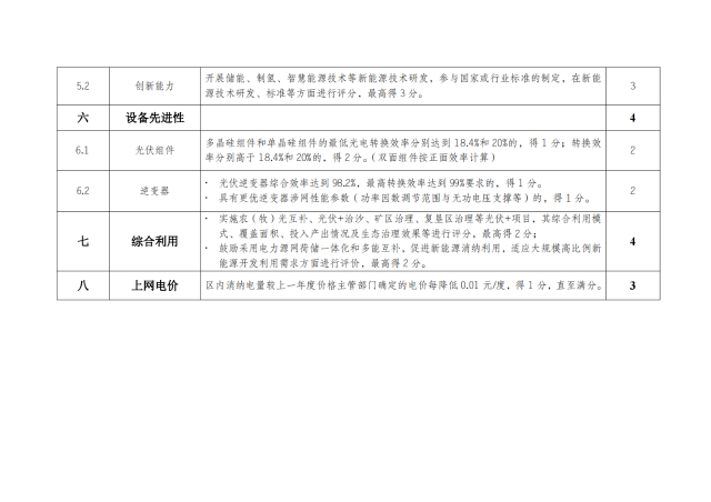 西藏自治區(qū)光伏發(fā)電項(xiàng)目競爭性配置評分細(xì)則規(guī)定了儲能配置方案,評分滿分為100分,其中儲能滿分為10分。新建儲能容量按光伏備案容量的20%,儲能時(shí)長4小時(shí)配置的,得5分;在此基礎(chǔ)上儲能時(shí)長每增加1小時(shí),增加1分,直至滿分。