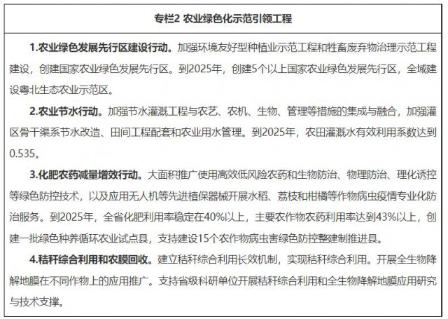 5.推廣農(nóng)業(yè)清潔生產(chǎn)新模式。落實(shí)百縣千鎮(zhèn)萬(wàn)村高質(zhì)量發(fā)展各項(xiàng)要求,加快推進(jìn)農(nóng)業(yè)清潔生產(chǎn)。加快構(gòu)建種植業(yè)、畜禽養(yǎng)殖業(yè)、水產(chǎn)養(yǎng)殖業(yè)清潔生產(chǎn)技術(shù)體系,實(shí)施糧經(jīng)飼統(tǒng)籌、種養(yǎng)加結(jié)合、農(nóng)林牧漁融合發(fā)展等一體化發(fā)展模式。支持我省預(yù)制菜產(chǎn)業(yè)高質(zhì)量發(fā)展。大力發(fā)展綠色低碳循環(huán)農(nóng)業(yè),推進(jìn)農(nóng)光互補(bǔ)、“光伏+設(shè)施農(nóng)業(yè)”、“海上風(fēng)電+海洋牧場(chǎng)”等低碳農(nóng)業(yè)模式。增加農(nóng)村清潔能源供應(yīng),推動(dòng)農(nóng)村生物質(zhì)能綜合利用。發(fā)展林業(yè)循環(huán)經(jīng)濟(jì),培育林業(yè)龍頭企業(yè),建設(shè)林草中藥材、油茶、竹等具有廣東特色的林業(yè)產(chǎn)業(yè)發(fā)展基地,積極創(chuàng)建國(guó)家現(xiàn)代林業(yè)產(chǎn)業(yè)示范園區(qū),實(shí)施森林生態(tài)標(biāo)志產(chǎn)品建設(shè)工程。以現(xiàn)代農(nóng)業(yè)產(chǎn)業(yè)園、農(nóng)林業(yè)龍頭企業(yè)等為重點(diǎn),深入推行農(nóng)業(yè)清潔生產(chǎn),形成一批可推廣、可復(fù)制的典型案例。