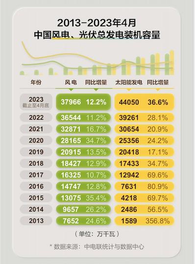 得益于雙碳政策和市場驅(qū)動,全國風(fēng)電、光伏發(fā)電新增裝機突破1.2億千瓦時,連續(xù)三年突破1億千瓦。據(jù)國家能源局數(shù)據(jù)顯示,截至4月底,我國風(fēng)電光伏發(fā)電總裝機已突破8億千瓦,占全國發(fā)電裝機的30.9%,約為36個三峽電站的總裝機容量。