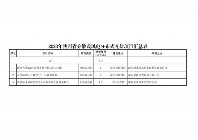 根據(jù)國家發(fā)展改革委辦公廳、國家能源局綜合司《關(guān)于2023年可再生能源電力消納責(zé)任權(quán)重及有關(guān)事項(xiàng)的通知》(發(fā)改辦能源〔2023〕569號(hào))和《關(guān)于開展陜西省 2023 年風(fēng)電光伏發(fā)電項(xiàng)目開發(fā)建設(shè)有關(guān)工作的通知》(陜發(fā)改能新能源〔20 23〕792 號(hào))精神,在各市申報(bào)基礎(chǔ)上,我們組織省級(jí)自然資源、生態(tài)環(huán)境、林業(yè)等職能部門會(huì)審,省級(jí)電網(wǎng)評(píng)分和專家評(píng)審,綜合確定了117個(gè)項(xiàng)目1001萬千瓦納入2023年陜西省風(fēng)電、光伏發(fā)電項(xiàng)目保障性并網(wǎng)規(guī)模(其中風(fēng)電73個(gè)604萬千瓦,光伏44個(gè)397萬千瓦)。