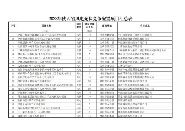 117個(gè)10GW!陜西2023年風(fēng)電光伏保障性并網(wǎng)項(xiàng)目競(jìng)爭(zhēng)配置結(jié)果公示