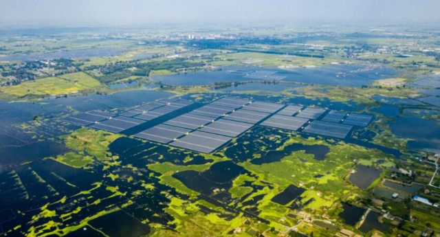 山東省濰坊市壽光市羊口鎮(zhèn)是百年曬鹽之地,這里的鹽堿地改良一直是個難題。國家電投壽光官臺營子150兆瓦漁光互補發(fā)電項目通過廢舊低效鹽田水產(chǎn)養(yǎng)殖與光伏發(fā)電相結(jié)合,在水面上方架設(shè)光伏板陣列、板下水域養(yǎng)殖魚蝦,實現(xiàn)了土地資源的節(jié)約集約高效利用。經(jīng)測算,該項目每年可提供清潔電能約2.52億千瓦時,替代標(biāo)準(zhǔn)煤7.7萬噸,減排二氧化碳21萬噸。