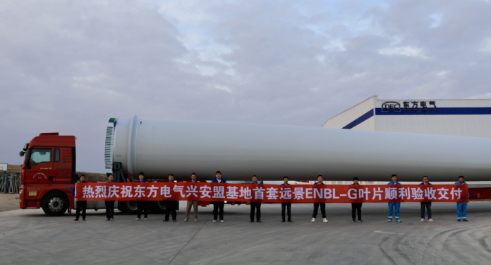 近日,大唐吉林前郭20萬(wàn)千瓦風(fēng)電項(xiàng)目首套ENBL-G型葉片在東方風(fēng)電興安盟制造基地成功產(chǎn)出并發(fā)運(yùn),項(xiàng)目計(jì)劃交付22套ENBL-G型葉片。