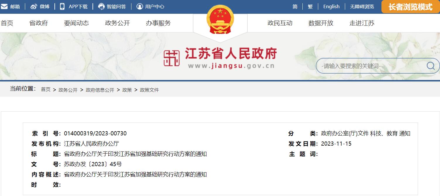 江蘇省加強(qiáng)基礎(chǔ)研究行動方案的通知