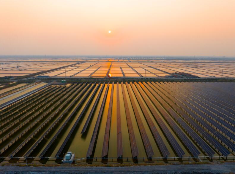 走進濰坊濱海風(fēng)光儲智慧能源示范基地,波光粼粼的鹽池水面上,一排排光伏板、一座座逆變器機組整齊排列,與蔚藍的天空交相輝映,宛若一片盛放在廣袤鹽田上的光伏“藍?!?,在陽光的映照下熠熠生輝,勾勒出一派科技創(chuàng)新與生態(tài)環(huán)境相得益彰的生態(tài)畫卷。