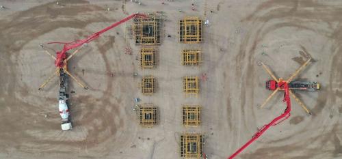 全國(guó)首批"沙戈荒"風(fēng)光基地調(diào)峰電源主廠房首倉(cāng)混凝土成功澆筑