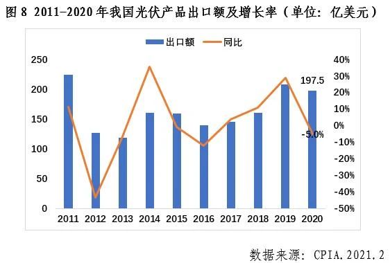 摘要:2020年,受新冠肺炎疫情的影響,全球經(jīng)濟倒退,然而我國光伏行業(yè)逆流而上,取得了令人矚目的成就,保持并延續(xù)了多項世界第一。應(yīng)用市場實現(xiàn)恢復(fù)性增長,2020年我國光伏新增裝機48.2GW,連續(xù)8年位居全球首位;累計裝機量達到253GW,連續(xù)6年位居全球首位;產(chǎn)業(yè)規(guī)模持續(xù)擴大,制造端四個主要環(huán)節(jié)實現(xiàn)兩位數(shù)增長,多晶硅產(chǎn)量39.2萬噸,連續(xù)10年位居全球首位;光伏組件產(chǎn)量124.6GW,連續(xù)14年位居全球首位;出口市場穩(wěn)中有升,光伏產(chǎn)品出口額197.5億美元,同比下降5%,但組件出口量則達到78.8GW,創(chuàng)歷史新高,同比增長18.3%。
