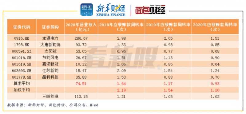 此外,補貼款收入在營業(yè)收入中占比較大,且補貼款結(jié)算周期長,2020年三峽能源的應(yīng)收賬款周轉(zhuǎn)率為1.02次,與行業(yè)龍頭龍源電力應(yīng)收賬款周轉(zhuǎn)水平仍有較大差距。