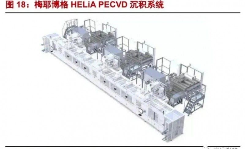 2)PECVD(非晶硅薄膜沉積):該步驟取代了傳統(tǒng)PERC工藝中的擴(kuò)散工藝,是構(gòu)造異質(zhì)結(jié)結(jié)構(gòu)的關(guān)鍵,難度、壁壘最高,價值占到全部設(shè)備的50%,為異質(zhì)結(jié)設(shè)備的核心。從技術(shù)路徑上:板式PECVD是目前主流,管式PECVD、Cat-CVD具潛力。國外廠商包括:梅耶博格(已不對外提供)、應(yīng)用材料等。國內(nèi)廠商包括:邁為股份、金辰股份、捷佳偉創(chuàng)、理想能源、鈞石能源等。