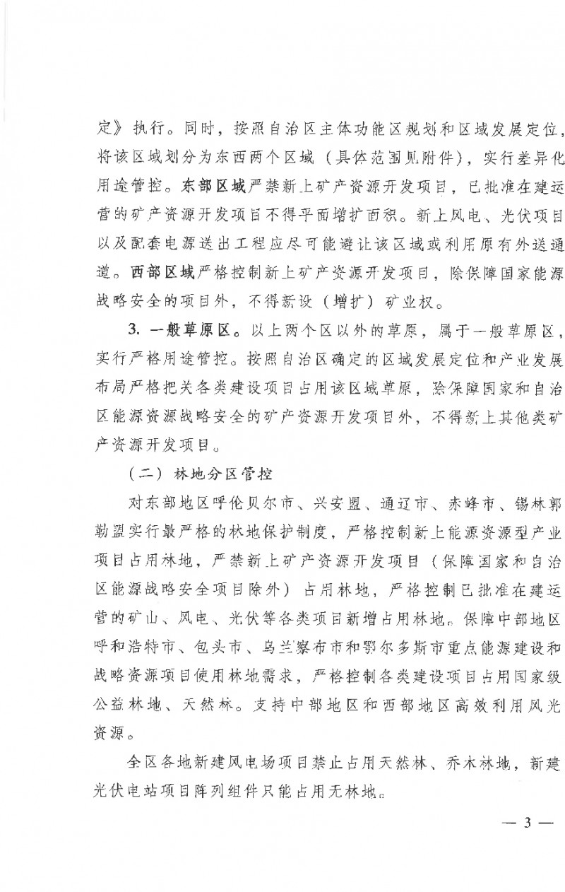 東部區(qū)域嚴(yán)禁新上礦產(chǎn)資源開發(fā)項(xiàng)目,已批準(zhǔn)在建運(yùn)營的礦產(chǎn)資源開發(fā)項(xiàng)目不得平面增擴(kuò)面積。新上風(fēng)電、光伏項(xiàng)目以及配套電源送出 工程 應(yīng)盡可能避讓該區(qū)域或利用原有外送通道。