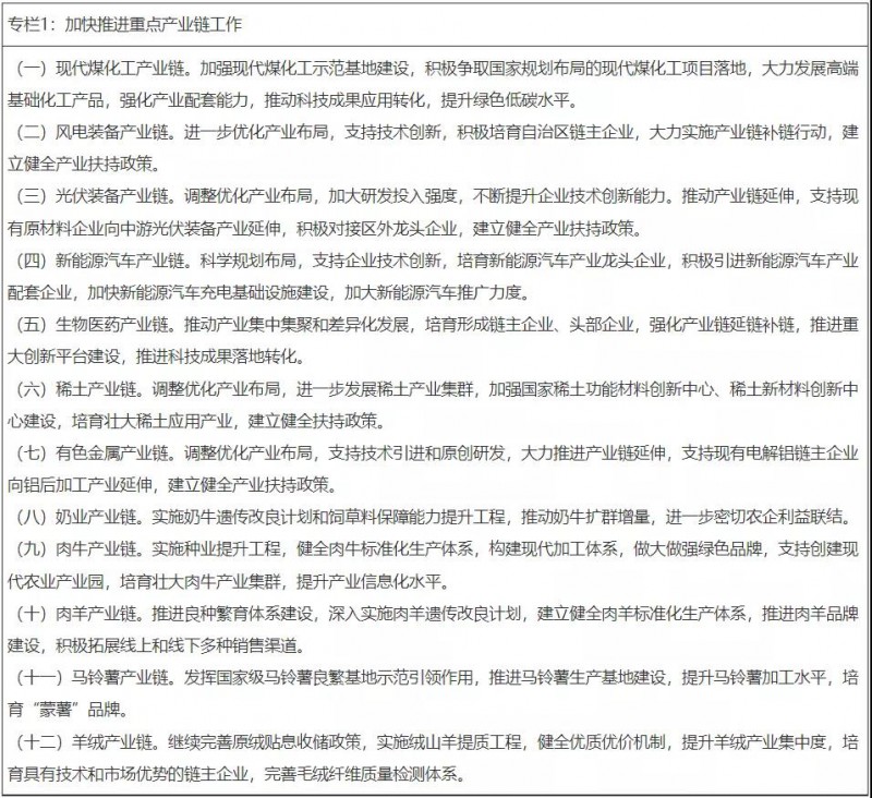 2月9日,內(nèi)蒙古自治區(qū)人民政府發(fā)布了《關(guān)于下達(dá)2022年內(nèi)蒙古自治區(qū)國民經(jīng)濟(jì)和社會發(fā)展計劃的通知》。通知提出,加快推進(jìn)光伏裝備產(chǎn)業(yè)鏈等重點產(chǎn)業(yè)鏈工作,包括調(diào)整優(yōu)化產(chǎn)業(yè)布局,加大研發(fā)投入強(qiáng)度,不斷提升企業(yè)技術(shù)創(chuàng)新能力;推動產(chǎn)業(yè)鏈延伸,支持現(xiàn)有原材料企業(yè)向中游光伏裝備產(chǎn)業(yè)延伸,積極對接區(qū)外龍頭企業(yè),建立健全產(chǎn)業(yè)扶持政策。