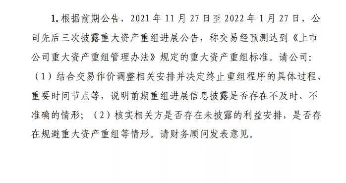 上交所表示,請福萊特結合交易作價調整相關安排并決定終止重組程序的具體過程、時間節(jié)點等,說明重組信息披露是否存在不及時和不準確的情形。核實相關方是否存在未披露的利益安排,是否存在規(guī)避重大資產重組等情形。