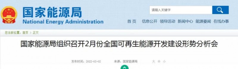 會議圍繞研究促進(jìn)2022年風(fēng)電光伏開發(fā)建設(shè),聽取了上次月度形勢分析會意見建議落實情況及全國可再生能源電力發(fā)展情況匯報,與會單位反映了大型風(fēng)電光伏基地項目并網(wǎng)和送出工程、林草地使用、項目核準(zhǔn)、選址調(diào)整、項目整合等問題,并提出了相關(guān)建議。2022年風(fēng)電光伏發(fā)展開局良好,1月份全國風(fēng)電光伏新增裝機超過1200萬千瓦,風(fēng)光電消納利用率保持在較高水平。