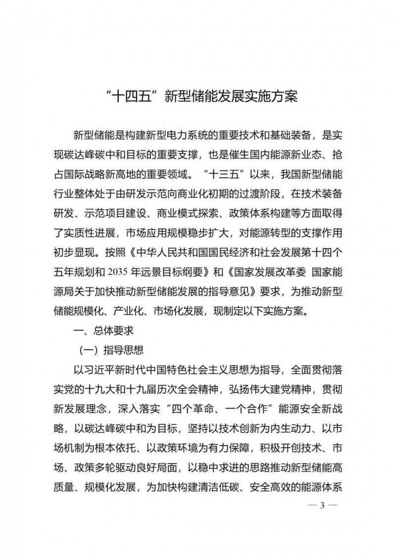 《“十四五”新型儲(chǔ)能發(fā)展實(shí)施方案》的通知