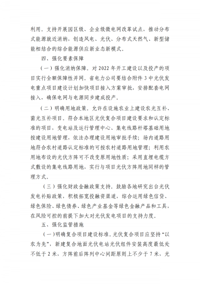 在具體保障措施方面,要求對2022年開工建設(shè)以及投產(chǎn)的項目實行全額保障性并網(wǎng),安排配套電網(wǎng)接入,確保電網(wǎng)與電源同步建成投產(chǎn)。規(guī)范開發(fā)秩序,不得將配套產(chǎn)業(yè)等作為項目備案和開發(fā)建設(shè)的門檻。