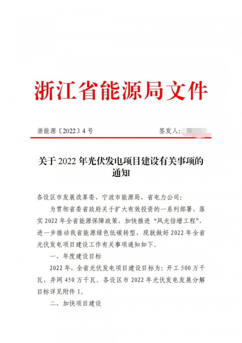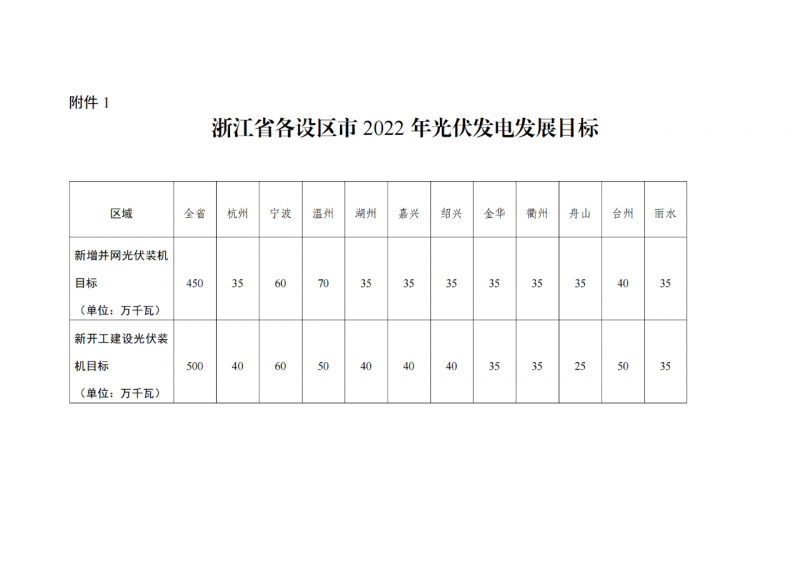3月21日,浙江省能源局下發(fā)《關(guān)于2022年光伏發(fā)電項目建設(shè)有關(guān)事項的通知》,規(guī)劃2022年全省光伏建設(shè)目標(biāo)為并網(wǎng)4.5GW,開工5GW,并對各市的光伏發(fā)電發(fā)展目標(biāo)進行了分解。