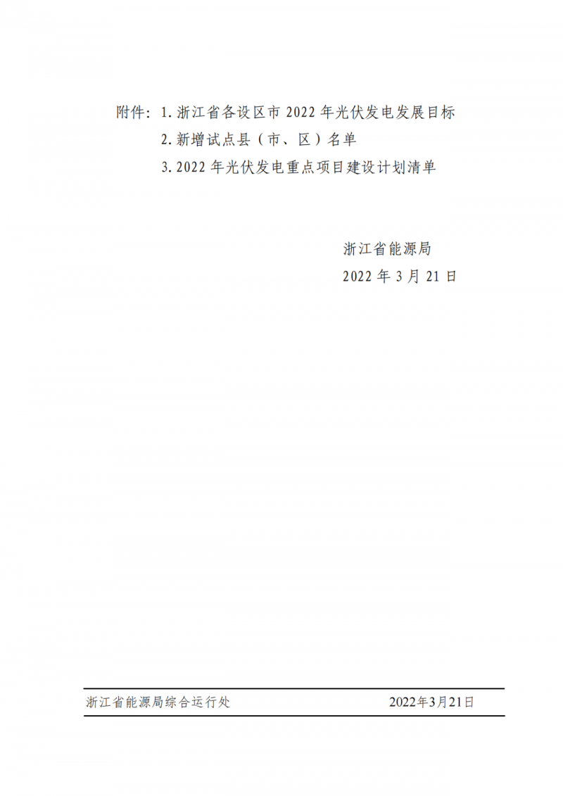 除此外,浙江省能源局要求持續(xù)加快分布式光伏建設(shè),并擴大整縣(市、區(qū))屋頂分布式光伏開發(fā)試點建設(shè)范圍,新增36個整縣試點名單,列入試點名單縣(市、區(qū))2022年光伏新增不得少于50MW,總規(guī)模為1.8GW。