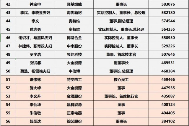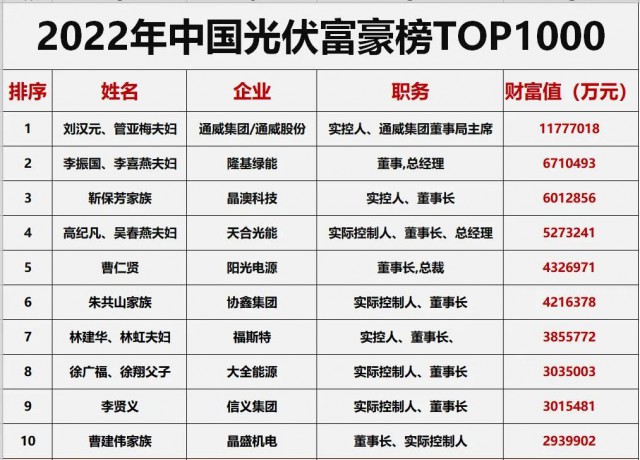 2022中國(guó)光伏財(cái)富榜TOP10依次為: