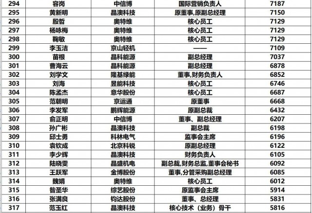 黑鷹團(tuán)隊(duì)制作此次榜單的方法:第一,此次統(tǒng)計(jì)的財(cái)富榜,是以光伏上市公司實(shí)時(shí)披露的前十大股東和高管持股數(shù)據(jù)為基礎(chǔ),乘以2022年7月4日企業(yè)收盤(pán)價(jià)計(jì)算得出,并不包含相應(yīng)上市企業(yè)股票價(jià)值(通常這也是相關(guān)人的核心財(cái)富)以外的財(cái)富。第二,《2022年中國(guó)光伏富豪榜TOP1000》涵蓋光伏企業(yè)實(shí)際控制人、現(xiàn)任公司高管/原高管、集團(tuán)公司高管等核心光伏從業(yè)人員,其他諸如財(cái)務(wù)投資者、或者二級(jí)市場(chǎng)投資者未計(jì)算在內(nèi)。第三,黑鷹團(tuán)隊(duì)實(shí)際統(tǒng)計(jì)到的人數(shù)近1500人,最終擇取了前1000人。