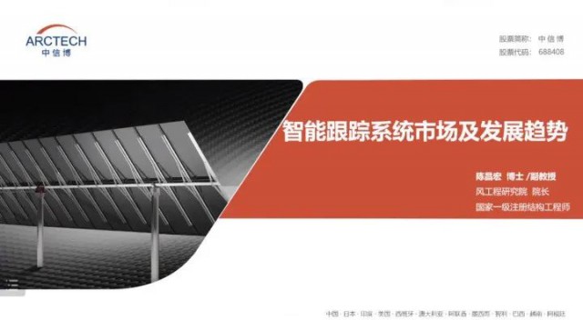 江蘇中信博新能源科技股份有限公司中信博風(fēng)工程研究院院長陳昌宏博士作智能跟蹤系統(tǒng)市場現(xiàn)狀與發(fā)展趨勢報告。陳院長從全球跟蹤支架市場格局與跟蹤支架技術(shù)發(fā)展趨勢兩個方面進行了詳細的介紹。