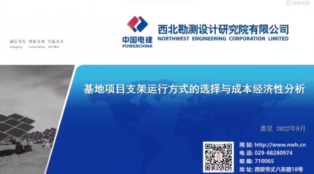 西北勘測設(shè)計研究院有限公司新能源工程院總工程師惠星作基地項目支架運行方式的選擇與成本經(jīng)濟性分析。支架選擇與方案設(shè)計需要綜合考慮光伏電站所處區(qū)域位置、氣候、地貌地形等環(huán)境因素,同時還要考慮發(fā)電小時數(shù)、系統(tǒng)效率、并網(wǎng)情況等,惠星總工程師對各種情況下的光伏支架選擇與成本經(jīng)濟性分析進行了深入分析。