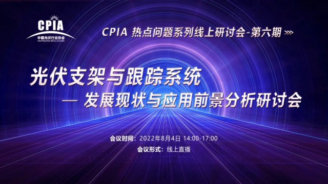 2022年8月4日下午,由中國光伏行業(yè)協(xié)會主辦的CPIA熱點問題系列線上研討會第六期——光伏支架與跟蹤系統(tǒng)發(fā)展現(xiàn)狀與應(yīng)用前景分析研討會通過網(wǎng)絡(luò)直播形式順利召開。本次會議邀請行業(yè)專家、光伏企業(yè)代表就光伏支架應(yīng)用場景、運行方式的與成本經(jīng)濟性、智能跟蹤系統(tǒng)發(fā)展現(xiàn)狀、系統(tǒng)設(shè)計開發(fā)關(guān)鍵技術(shù)等方面內(nèi)容進行了詳細分析。千余名業(yè)內(nèi)人士觀看了此次會議直播,氣氛熱烈。會議由中國光伏行業(yè)協(xié)會宣傳與對外聯(lián)絡(luò)部主任戴思源主持。