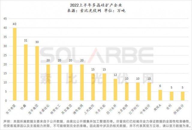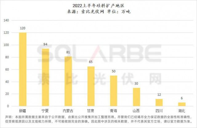 ●為填補供應(yīng)缺口,2022年上半年,有不少于19家企業(yè)發(fā)布硅料擴產(chǎn)計劃,擴產(chǎn)總量達458萬噸(多晶硅269萬噸,工業(yè)硅189萬噸),投資金額超1620億,擴產(chǎn)多集中在新疆、內(nèi)蒙古、寧夏、四川等地。