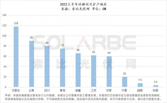 從擴產(chǎn)地區(qū)來看,與硅料大同小異,硅棒硅片擴產(chǎn)地區(qū)也較多集中于內(nèi)蒙古、云南、四川、新疆、青海等地。