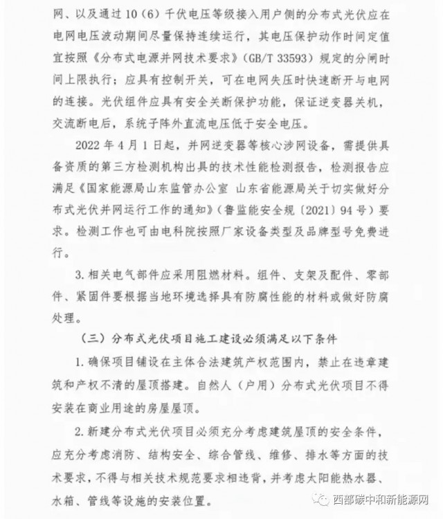 此外,整縣分布式開發(fā)按照“光伏+儲能”方式推進,根據(jù)具體消納情況配建或租賃不低于15%、2小時的儲能設(shè)施。電網(wǎng)消納能力不足時,應(yīng)提高儲能配置比例及充放電時長,確保分布式光伏就地就近消納、滿足95%利用率要求。