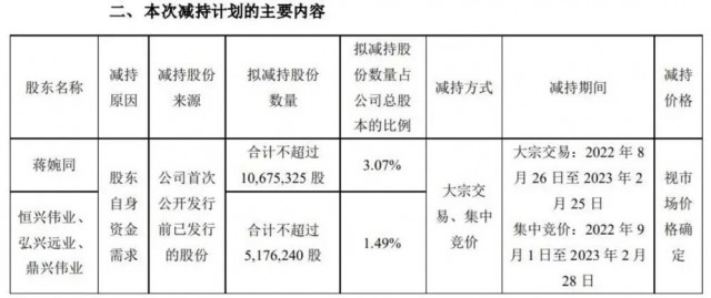 據(jù)了解,持公司股份1067.5325萬股(占總股本比例3.07%)的公司控股股東、實(shí)際控制人的一致行動人蔣婉同計(jì)劃清倉其持有的股份。蔣婉同計(jì)劃自2022年8月26日至2023年2月25日以大宗交易方式,自2022年9月1日至2023年2月28日以集中競價方式合計(jì)減持全部股份。資料顯示,蔣婉同為控股股東、實(shí)際控制人之一梁美珍之女,為梁美珍的一致行動人。