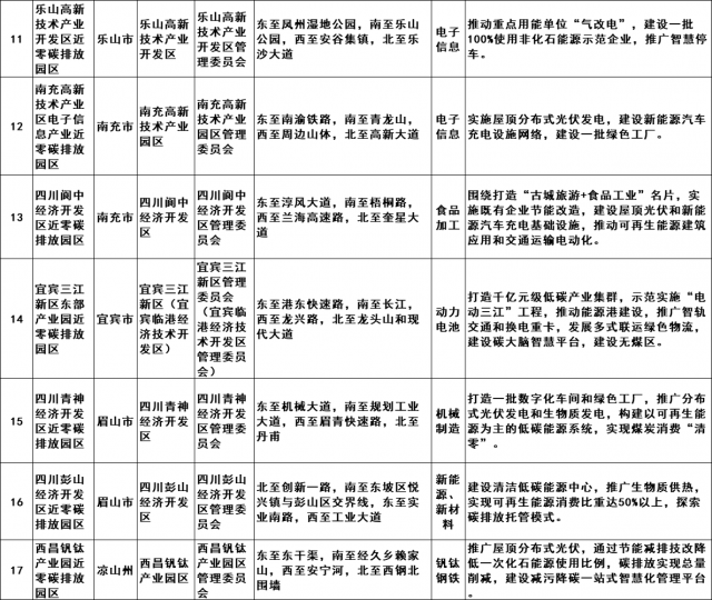 四川省近零碳排放園區(qū)試點(diǎn)擬確定名單(含試點(diǎn)園區(qū)名稱、所屬地區(qū)、所屬園區(qū)、申報主體、試點(diǎn)范圍、主導(dǎo)產(chǎn)業(yè)、試點(diǎn)特色),共17家園區(qū)。