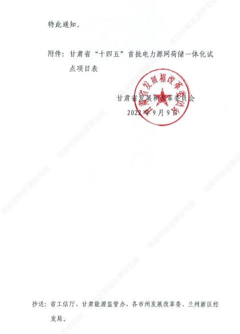 9月9日,甘肅省發(fā)改委印發(fā)《關(guān)于開展“十四五”首批電力源網(wǎng)荷儲一體化 項(xiàng)目試點(diǎn)的通知》。