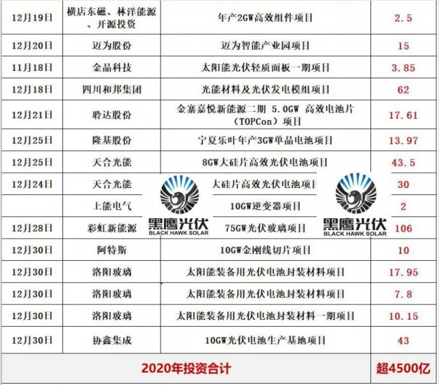 四.2020光伏新項目投資超4000億!單個項目投資額在10億元以上的就多達82個,50億元以上的有22個。