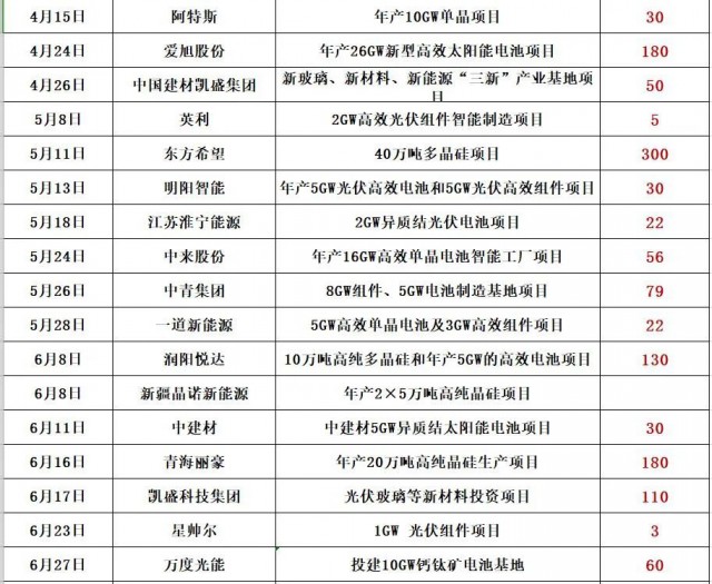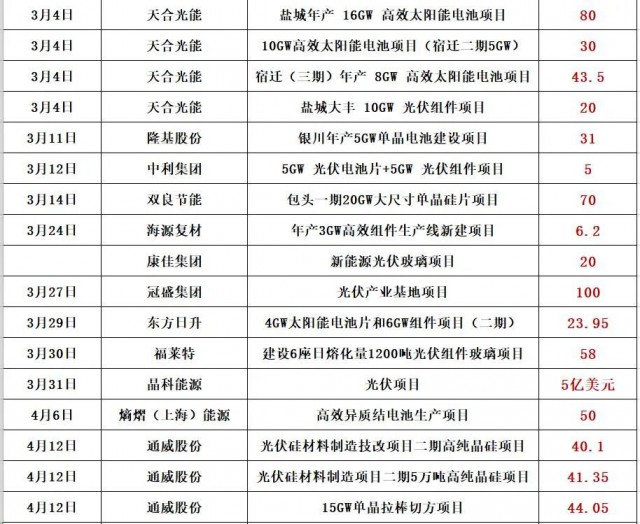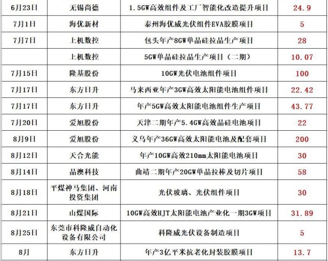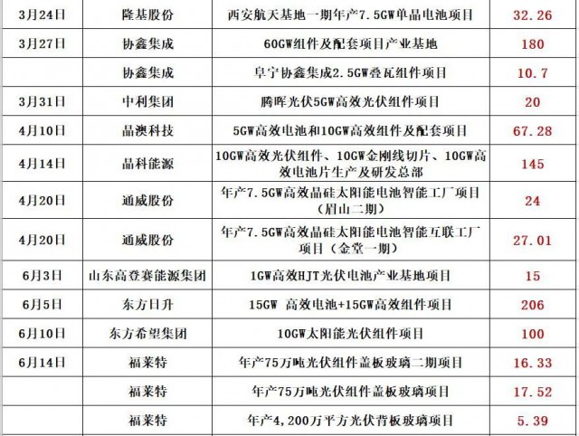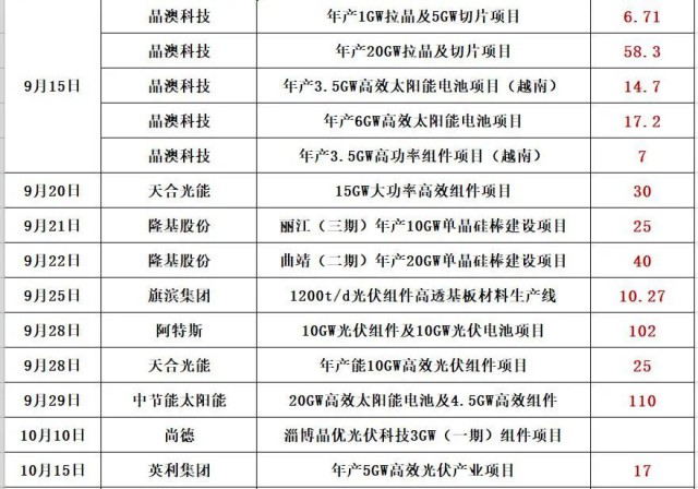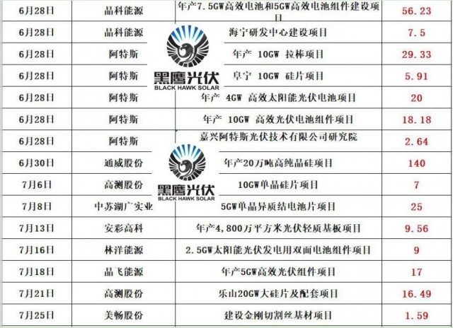 最新的消息是,通威股份擬在鹽城市投資25GW高效光伏組件項目,預計固定資產(chǎn)投資約40億元。同期消息,天合光能擬投資60億,在淮安簽約15GW電池片和15GW組件項目!
