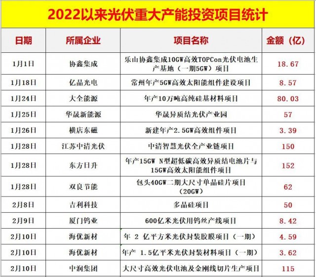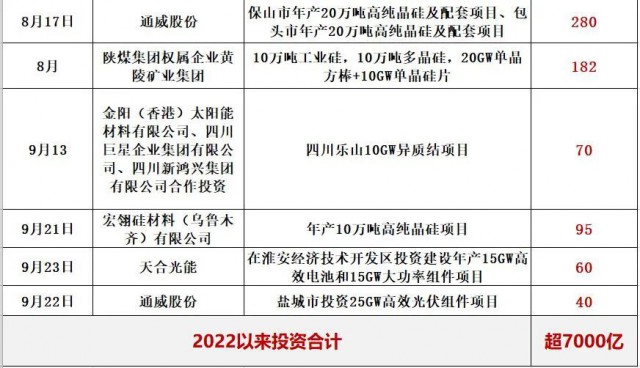 二.2022以來,光伏產(chǎn)能投資已超過7000億,特別是龍頭企業(yè)動輒百億的投資(公告)頻頻出現(xiàn),跨界者持續(xù)涌入,產(chǎn)能投資還在提速,階段性絕對過剩風險加劇。
