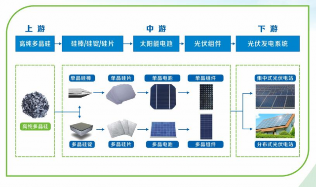 光伏產(chǎn)業(yè)是將多晶硅通過(guò)各類技術(shù)和工藝線路生產(chǎn)出太陽(yáng)能電池片,并將太陽(yáng)能電池經(jīng)過(guò)串并聯(lián)后進(jìn)行封裝保護(hù)形成大面積的太陽(yáng)能電池組件,再配合功率控制器等,形成光伏發(fā)電裝置的產(chǎn)業(yè)鏈。