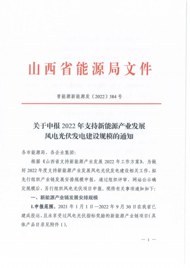 10月12日,山西省能源局印發(fā)《山西省支持新能源產(chǎn)業(yè)發(fā)展2022年工作方案》、《關(guān)于申報2022年支持新能源產(chǎn)業(yè)發(fā)展風(fēng)電光伏發(fā)電建設(shè)規(guī)?!返耐ㄖ瑪M先行組織產(chǎn)業(yè)鏈發(fā)展安排規(guī)模申報3GW以及1GW煤電靈活性調(diào)峰改造配套風(fēng)光項目。