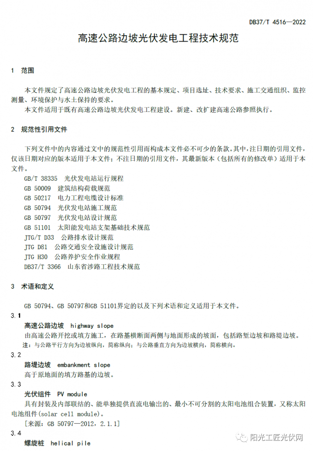 山東高速集團(tuán)黨委常委、副總經(jīng)理石振源回答說(shuō),本標(biāo)準(zhǔn)是在現(xiàn)行光伏發(fā)電工程建設(shè)技術(shù)標(biāo)準(zhǔn)體系下,根據(jù)高速公路特點(diǎn)制定的。標(biāo)準(zhǔn)規(guī)定了邊坡光伏發(fā)電工程的項(xiàng)目選址、施工交通組織、監(jiān)控測(cè)量、環(huán)境保護(hù)與水土保持等技術(shù)要求,內(nèi)容詳細(xì)、全面、完整,具有較強(qiáng)的專(zhuān)業(yè)性和操作性。