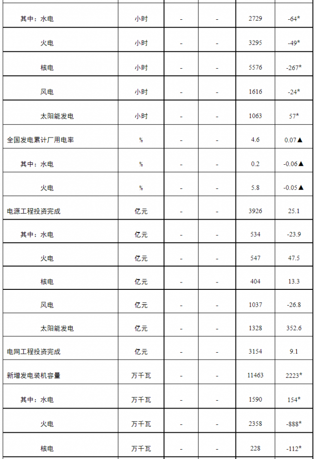 1-9月份,全國發(fā)電設備累計平均利用2799小時,比上年同期減少87小時。其中,火電3295小時,比上年同期減少49小時;核電5576小時,比上年同期減少267小時;風電1616小時,比上年同期減少24小時。