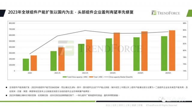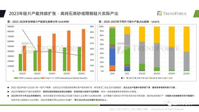 TOPCon因為它的性價比優(yōu)勢,實現(xiàn)了率先放量。預計到2023年底,N型電池片的產(chǎn)能將達到180GW,占比約為25.7%。