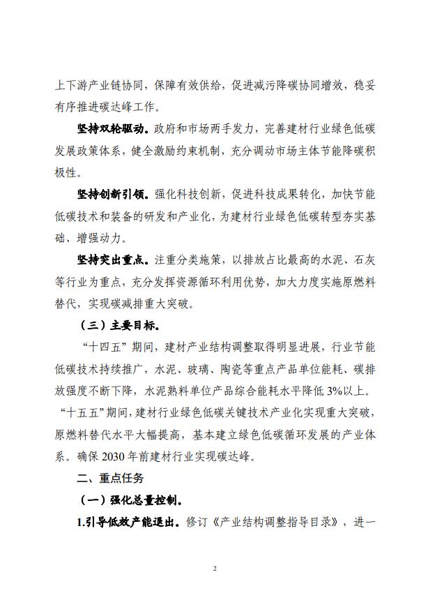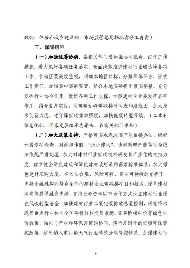 四部門關(guān)于印發(fā)建材行業(yè)碳達(dá)峰實(shí)施方案的通知