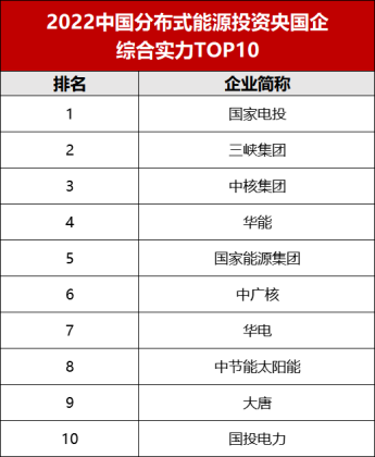 在各大央國企之間,根據(jù)已有項目規(guī)模、計劃裝機數(shù)量、以及近幾年行業(yè)的影響力綜合評估,各大能源集團(tuán)之間呈現(xiàn)出一定差距。索比光伏網(wǎng)整理《2022年分布式能源投資央國企綜合實力TOP10》企業(yè)榜單,僅供參考。
