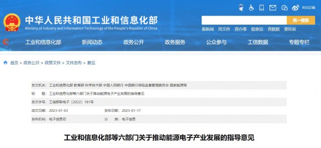 1月17日,工信部等六部門發(fā)布《關于推動能源電子產(chǎn)業(yè)發(fā)展的指導意見》(以下簡稱《意見》)。