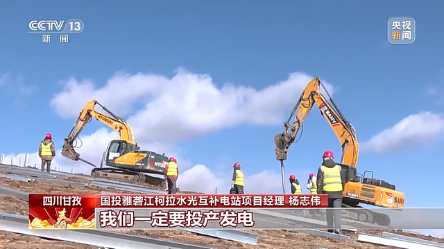 臺央視記者 古峻嶺:在海拔4600米的柯拉水電光伏互補電站,1000多名建設者正在加緊施工,他們要在春節(jié)期間把53萬根光伏基礎樁全部施工完成。