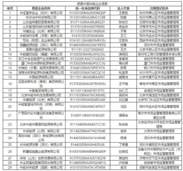 中央企業(yè)公告的假冒國企名單匯總(第二批)