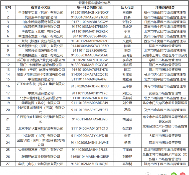 3月22日,華能新能源股份有限公司發(fā)布嚴(yán)正聲明,稱有不法分子通過偽造華能新能源股份有限公司證照和印章,在全國多地將17家企業(yè)登記為華能新能源下屬子公司,并可能存在涉嫌以華能新能源及所屬企業(yè)名義開展經(jīng)營活動(dòng)的情形,其中部分企業(yè)侵犯了“華能”字號,對華能新能源的聲譽(yù)造成不良影響。